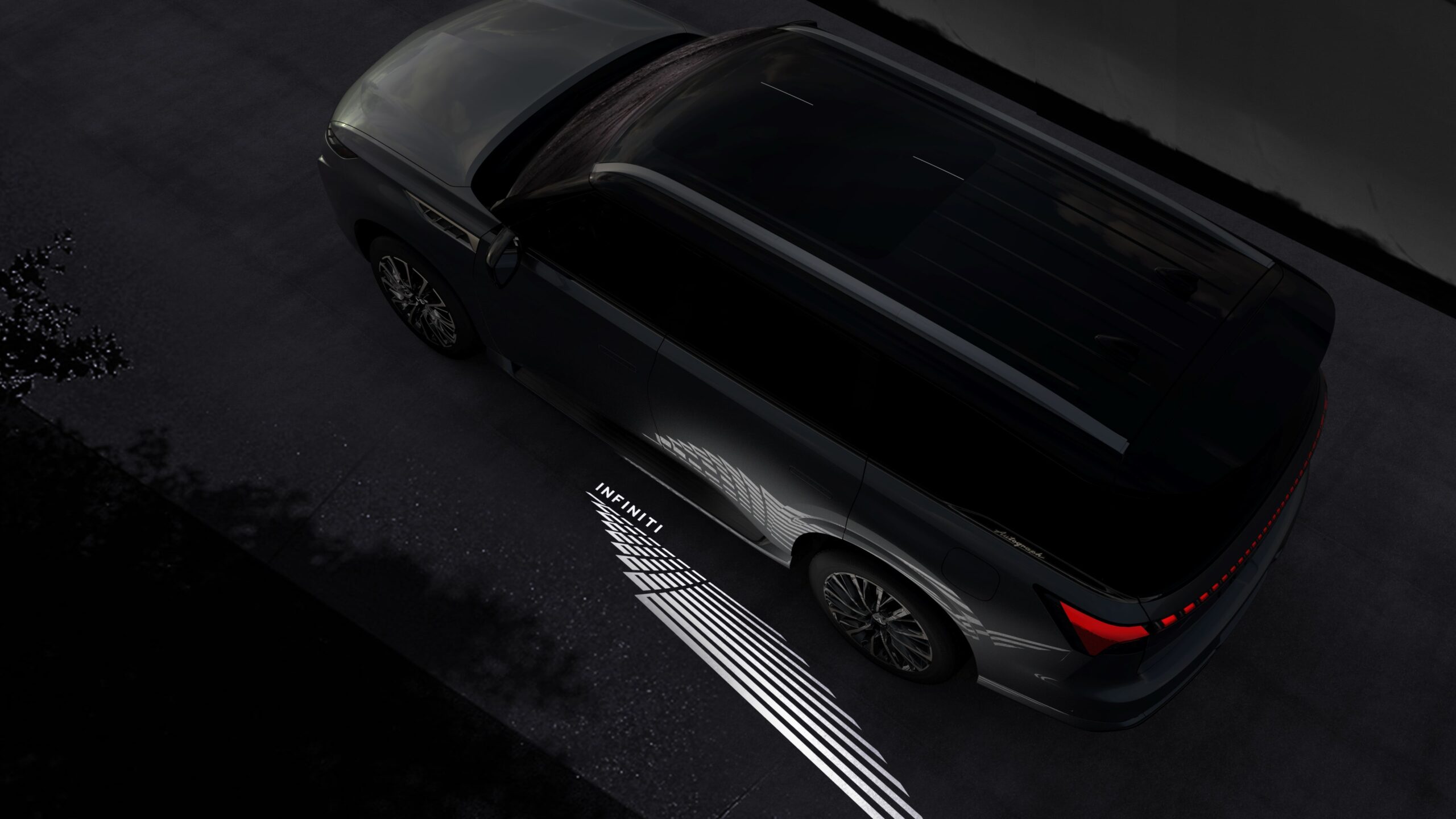 يُضفي هذا النظام لمسة ترحيبية أنيقة عند اقتراب السائق من السيارة، بإضاءة تدريجية تشمل شعار إنفينيتي والأرضية المحيطة برسومات هندسية مميزة.