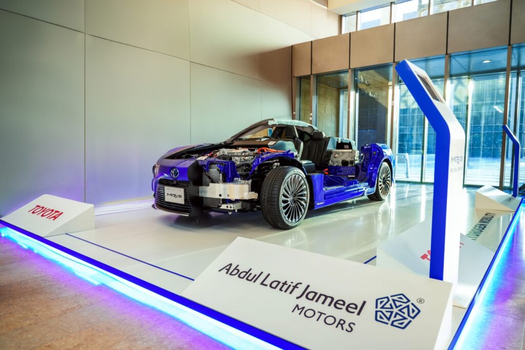 أعلنت عبداللطيف جميل للسيارات، الموزع المعتمد لسيارات تويوتا في المملكة منذ عام 1955، إلى جانب شركة تويوتا موتور كوربوريشن وشركة تويوتا تسوشو، عن الاختتام الناجح لبرنامج تجريبي لاستخدام سيارات تعمل بخلايا وقود الهيدروجين، وذلك بالتعاون مع كلية الهندسة في جامعة الأميرة نورة بنت عبدالرحمن وعددٍ من الجهات الداعمة، في إطار مذكرة التفاهم بين وزارة الطاقة وجامعة الأميرة نورة لتنفيذ مشاريع تجريبية لتطبيقات سيارات خلايا وقود الهيدروجين.