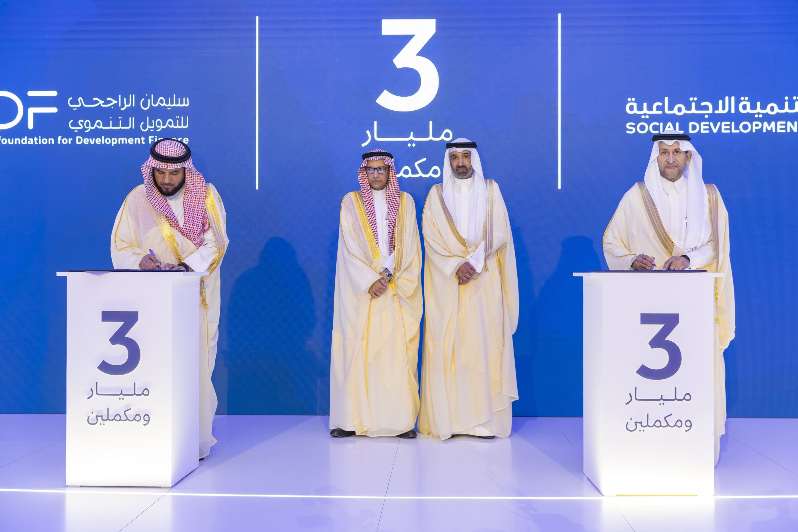 تحت رعاية كريمة من معالي وزير الموارد البشرية والتنمية الاجتماعية، رئيس مجلس إدارة بنك التنمية الاجتماعية، المهندس أحمد بن سليمان الراجحي، أُقيم حفل “٣ مليار ومكملين” احتفاءً بإنجاز وطني كبير يجسّد عمق الشراكة بين البنك ومؤسسة سليمان الراجحي للتمويل التنموي، والتي انطلقت في 2014 وأثمرت عن تمويلات تجاوزت 3 مليارات ريال سعودي دعمت أكثر من 200,000 أسرة منتجة في أنحاء المملكة.