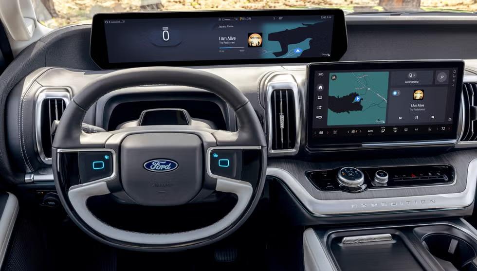 وتأتي السيارة بعجلات ضخمة 24 إنش، مع داخلية جديدة كلياً بعناصر تشمل شاشة 24 إنش جديدة للعدادات فوق لوحة القيادة، ووضحت فورد أن الغرض من وضعها في هذا المكان المرتفع هو الحفاظ على نظر السائق على الطريق باستمرار وحمايته من التشتت.
