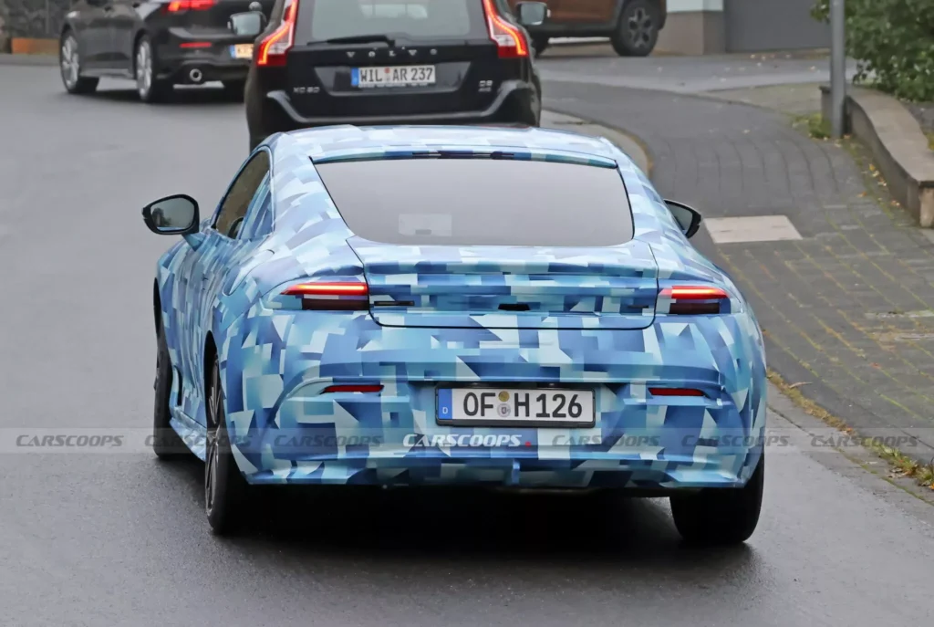 كما تخلت الكوبيه عن الجناح الخلفي الذي رأيناه في النسخة الاختبارية، وتمنعنا التمويهات من التأكيد من باقي تفاصيل الخلفية مثل الشريط الضوئي LED الممتد بعرض السيارة بالكامل، والذي رأيناه في النسخة الاختبارية.