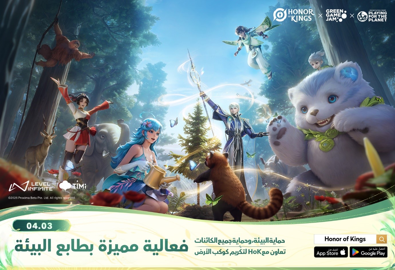 أعلنت مجموعة TiMi Studio المطوِّرة وLevel Infinite الناشرة عن إطلاق حملة بيئية جديدة داخل لعبة Honor of Kings، وذلك ضمن فعالية Green Game Jam 2025 المدعومة من برنامج الأمم المتحدة للبيئة (UNEP). تهدف الحملة إلى ربط إنجازات اللاعبين في اللعبة بدعم واقعي لمشاريع حماية البيئة والغابات حول العالم.