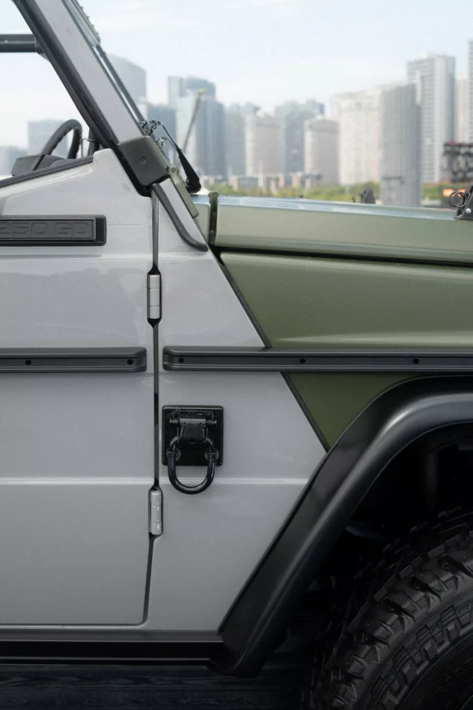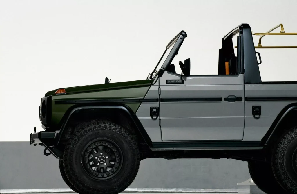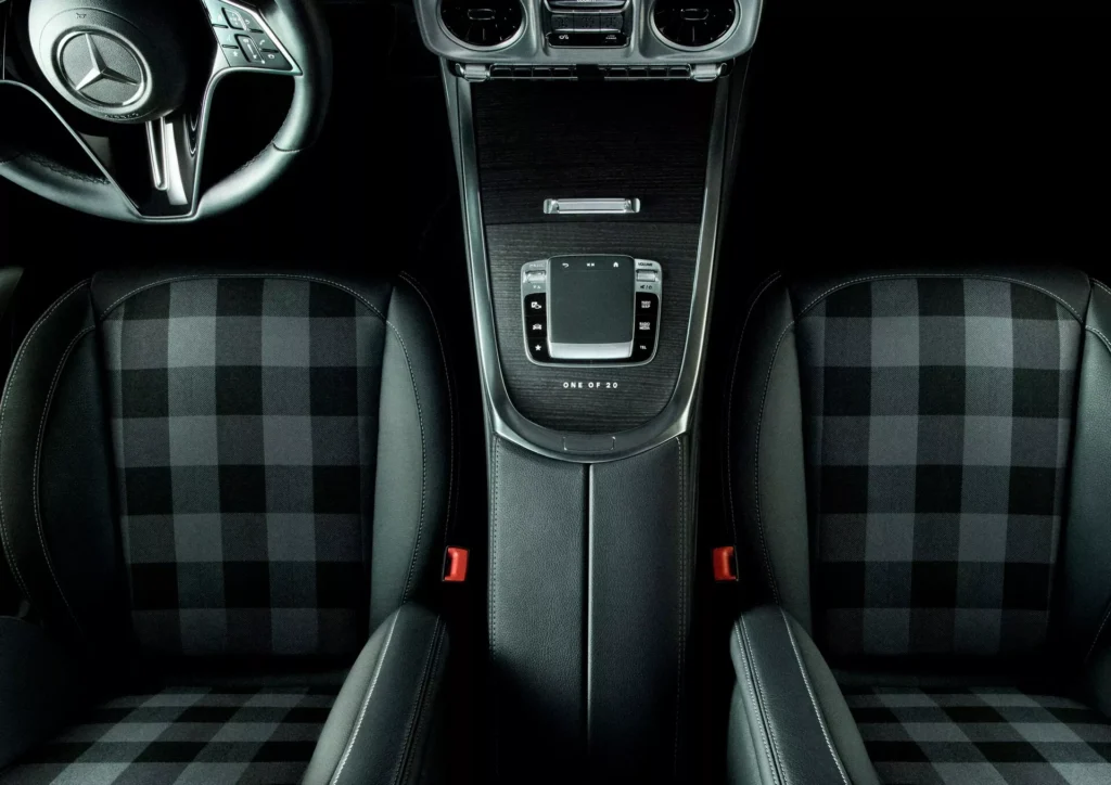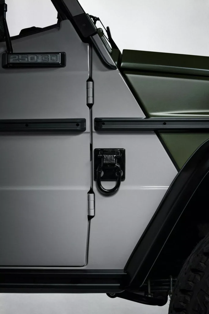 بالانتقال للإصدار الخاص الجديد لجي كلاس فمن الواضح أنه مستوحى من النسخة الفنية التي ذكرناها بالأعلى، مع نفس الخارجية الرمادية والخضراء واللمسات السوداء، مع غطاء خاص للإطار الاحتياطي، وتجليد كلاسيكي في الداخلية.