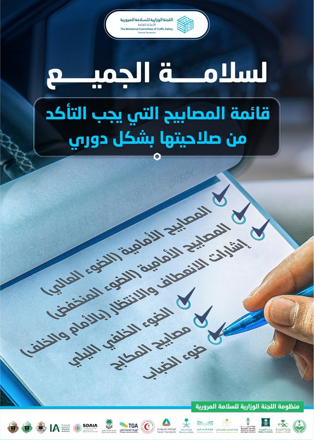 وشددت منصة السلامة المرورية عبر منشور لها على أهمية فحص مصابيح المركبة للتأكد من سلامتها وكفاءتها على العمل، حيث قالت: “لأجل سلامتك وسلامة مستخدمي الطريق الآخرين، احرص على التأكد من سلامة كافة مصابيح المركبة بشكل دوري”.