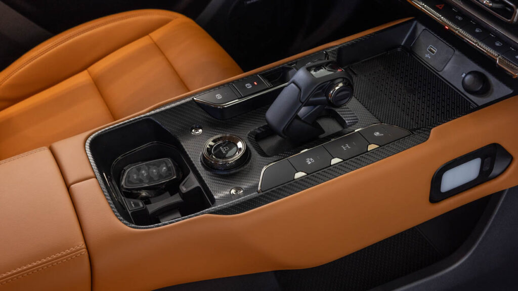 وتأتي السيارة بداخلية مزودة بثلاثة صفوف مقاعد تدعم 7 ركاب، مع مواصفات تشمل: مقعد سائق كهربائي بـ 6 وضعيات مختلفة، لوحة عدادات رقمية 10.25 إنش، شاشة معلومات ترفيهية 14.6 إنش تدعم تطبيقات آبل كاربلاي وأندرويد أوتو، مكيف أوتوماتيكي بتحكم منفصل للمقاعد الخلفية، إضاءة داخلية محيطية فاخرة، شاحن لاسلكي للجوال، 6 وسائد هوائية، فتحة سقف بانورامية.