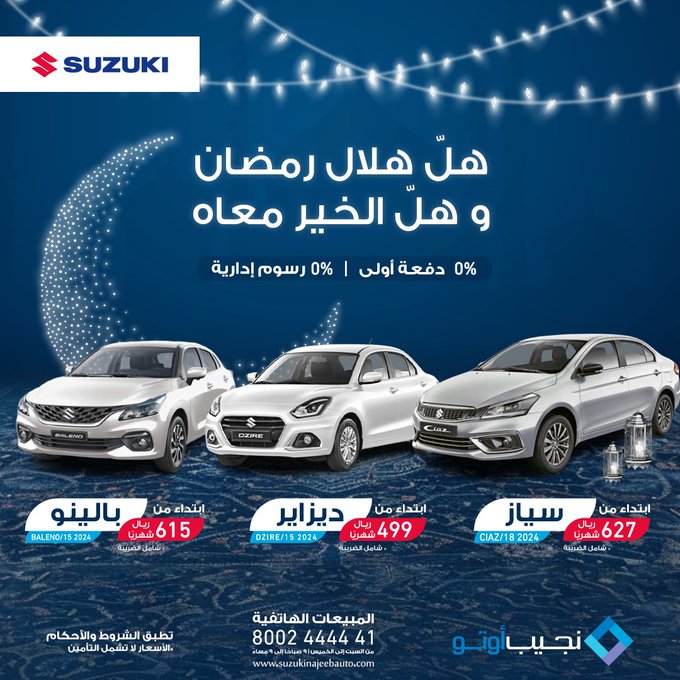 عروض نجيب أوتو الرمضانية المميزة على تقسيط سيارات سوزوكي